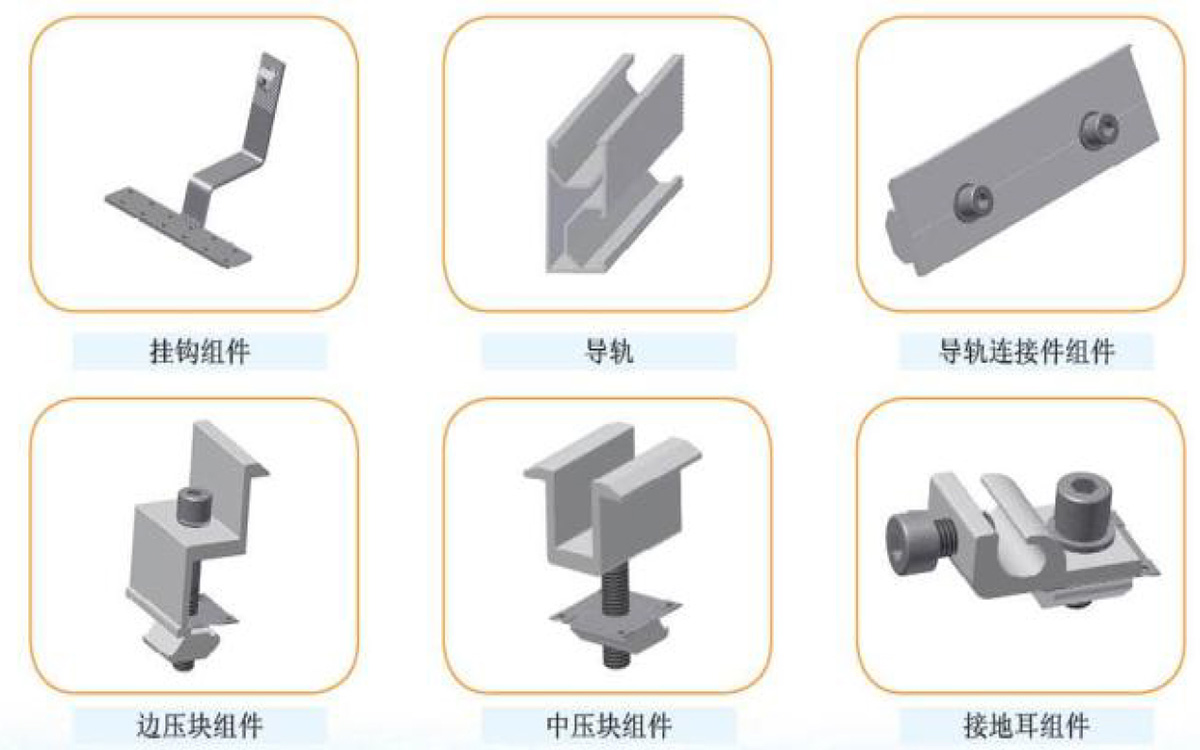 傳統琉璃瓦光伏支架安裝類型: 安裝特點: A. 直接將屋頂掛鉤固定在 琉璃瓦下方的木梁上; B. 導軌沿不銹鋼掛鉤一側安裝; C. 使用邊壓,中壓固定太陽能板。 產品特點: 1. 現場安裝零件少。產品模塊化設計,零件在工廠已預裝,現場安裝零件只有6個; 2. 安裝工具簡單。標準化程度高,安裝工具簡單、數量少,僅4個; 3. 替換不同的掛鉤可應用于其它形式的瓦屋頂。 產品性能: ●屋頂類型:磚瓦; ●材料:鋁合金6005和不銹鋼304; ●組件類型:邊框或無邊框; ●組件方向:橫放或堅放; ●地貌類型: B,C; ●設計風速: 45m/s; ●雪載荷:1.4KN/m2。 |